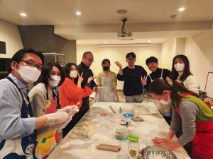 餃子の皮を生地から作って、みんなで包んで食べます!