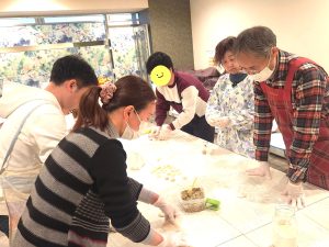 餃子の皮を生地から作って、みんなで包んで食べます!